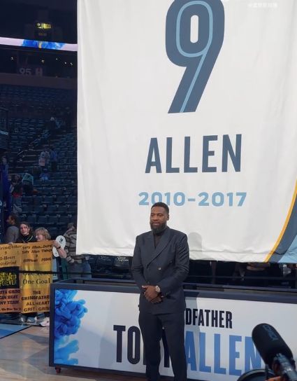 托尼-阿伦于2010年至2017年效力于孟菲斯灰熊队,六次入选NBA最佳防守阵容,被认为是NBA历史上最优秀的防守球员之一。今年3月,灰熊在主场对阵热火的比赛后为托尼-阿伦举办了9号球衣退役仪式。托尼-阿伦当时盛装出席致谢,罗斯、小加索尔与兰多夫等好友到场祝贺。