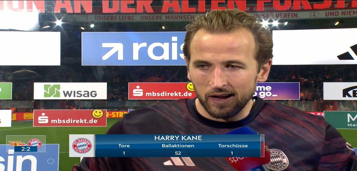 在客场2-2战平柏林联合,拜仁开季16连胜的纪录被终结的赛后,本场比赛打入绝平进球的拜仁前锋哈里-凯恩接受了采访。